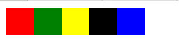 <html> <head> <style type="text/css"> .div1 { height:40px; width:40px; background-color:red; position:releative; float:left; clear:right; } .div2 { height:40px; width:40px; background-color:green; position:relative; float:left; clear:right; } .div3 { height:40px; width:40px; background-color:yellow; position:relative; float:left; clear:right; } .div4 { height:40px; width:40px; background-color:black; position:relative; float:left; clear:right; } .div5 { height:40px; width:40px; background-color:blue; position:relative; float:left; clear:right; } </style> </head> <body> <div class="div1"> </div> <div class="div2"> </div> <div class="div3"> </div> <div class="div4"> </div> <div class="div5"> </div> </body> </html>